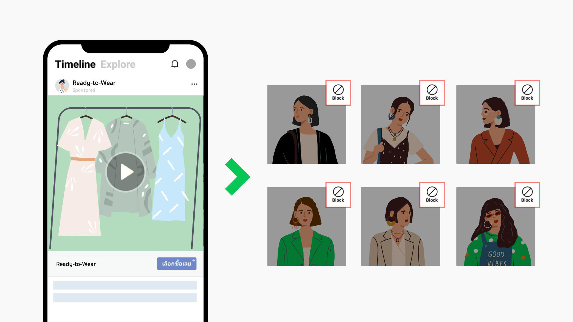นอกจากนี้ยังสามารถนำมาปรับใช้ในการทำแคมเปญร่วมกับวัตถุประสงค์อื่น ๆ ได้ เช่น วัตถุประสงค์ “การดูวิดีโอ” (Video views) โดยรีทารเกตหา “เพื่อนที่บล็อกบัญชี” (Friends blocking the account) ให้รับชมวิดีโอ เพื่อกระตุ้นความสนใจเค้าอีกครั้งหรือ หากต้องการสร้าง Lookalike ในแคมเปญอาจจะเลือก “ไม่รวม” (Exclude) กลุ่มนี้ออกจากแคมเปญได้ เป็นต้น ในทางกลับกันหากต้องการสร้างกลุ่มเป้าหมายจาก “เพื่อนที่ไม่ได้บล็อกบัญชี” (Valid friends) ก็ทำได้เช่นกัน ตามขั้นตอนด้านบน