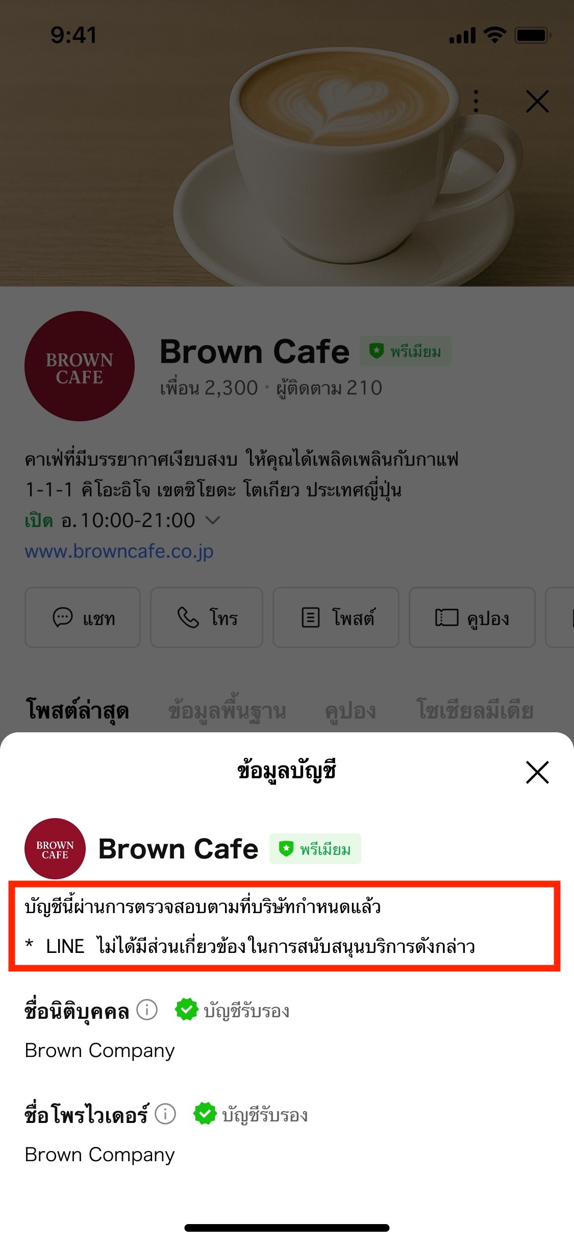 หากยังไม่ได้รับการรับรอง ระบบจะแจ้งว่า “บัญชีนี้ยังไม่ได้รับการตรวจสอบ”