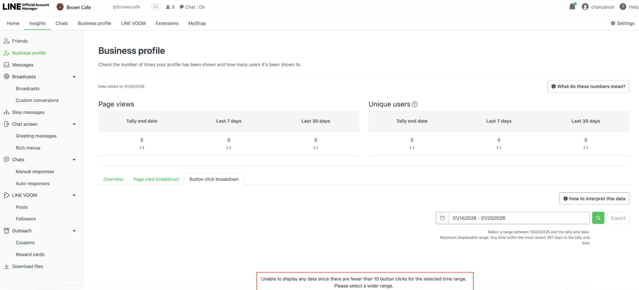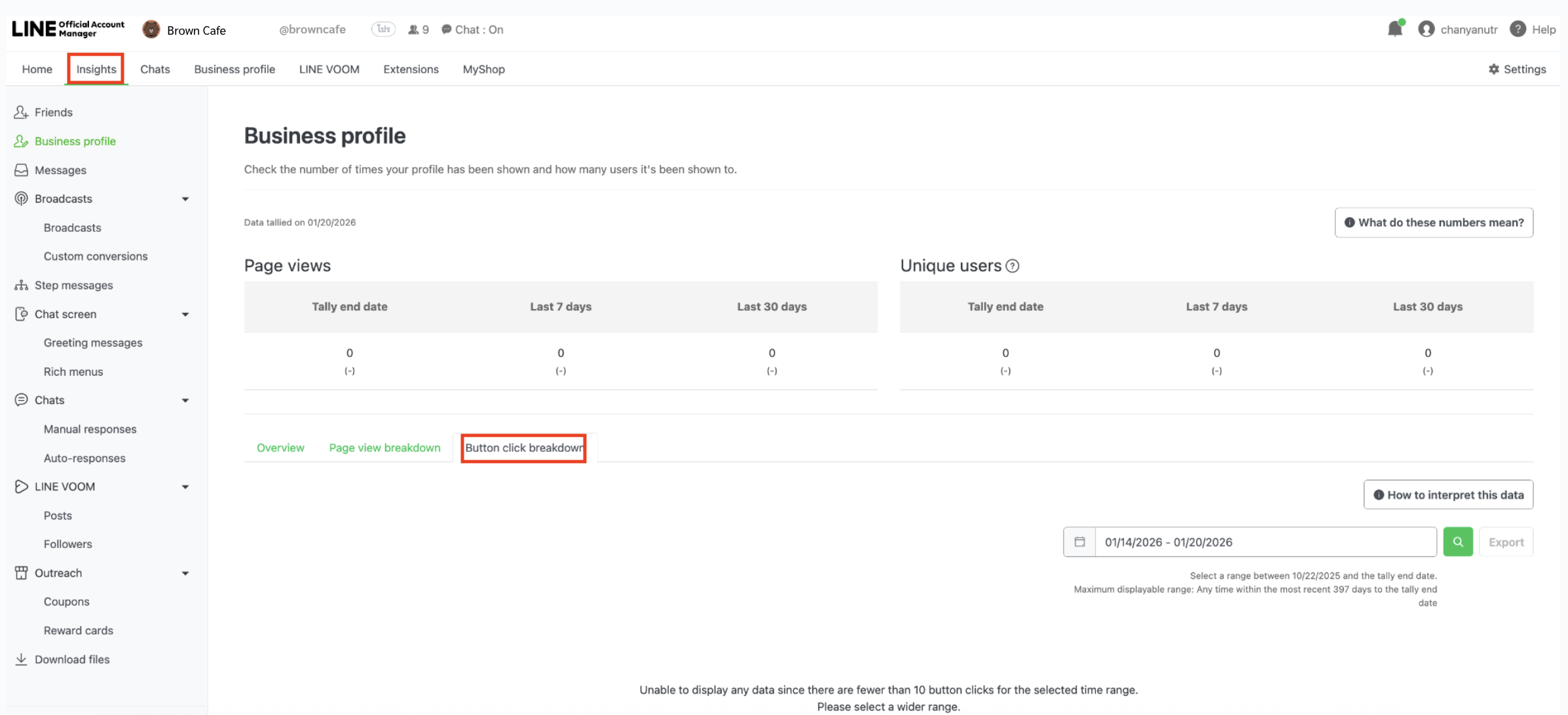 จากการอัปเดตล่าสุด ร้านค้าสามารถเข้าไปดู Insight (ข้อมูลเชิงลึก) การคลิกของ Action Button ได้จากหน้า CMS (ระบบหลังบ้าน) ในเมนู Insight โดยเลือกแท็บ Button Click Breakdown (รายละเอียดการคลิกปุ่ม) ซึ่งจะแสดงข้อมูลการคลิกของ Action Button ที่แสดงอยู่บนหน้า Business Profile