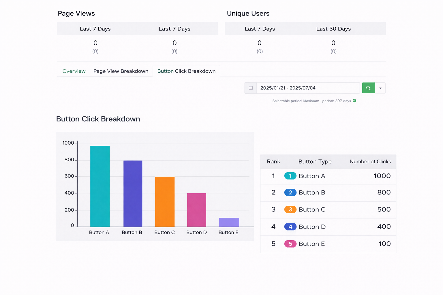 เงื่อนไขในการแสดงผล : การคลิก Action Button จะเกิดขึ้นเมื่อมีจำนวนการคลิกของปุ่มอย่างน้อย 10 ครั้ง ภายในช่วงเวลาที่เลือกหากจำนวนการคลิกยังไม่ถึงระบบจะยังไม่แสดงข้อมูล แนะนำให้เลือกช่วงเวลาที่ยาวขึ้น