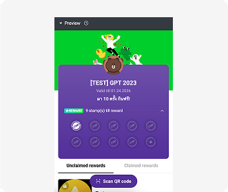 ร้านค้าสามารถสร้างและจัดการบัตรสะสมแต้มได้หลายใบ พร้อมแสดงรางวัลชัดเจนและแชร์ผ่าน QR Code เเละ URL