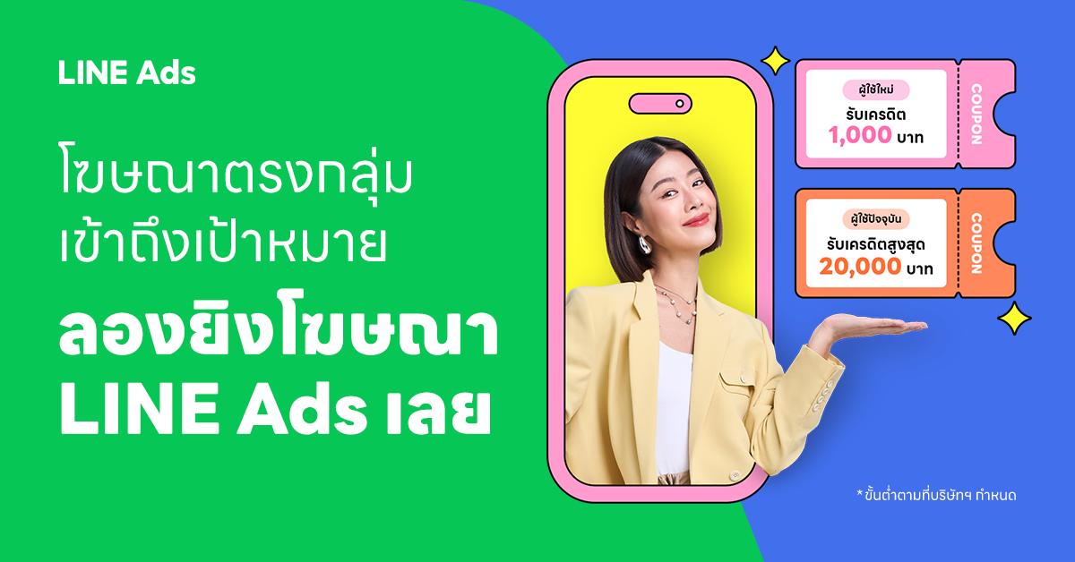 เครดิตยิงโฆษณามูลค่าสูงสุด 1,000 บาท เมื่อมียอดในการลงโฆษณาและชำระเงินขั้นต่ำ 1,000 บาท