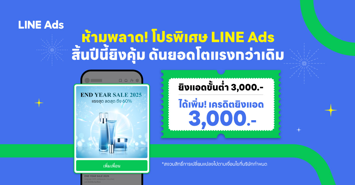 3. ขอสงวนสิทธิ์สำหรับผู้ที่เปิดบัญชีโฆษณาใหม่ด้วยตนเองเป็นครั้งแรก และจะต้องเป็นบัญชีที่สร้างตั้งแต่วันที่ 1 ตุลาคม 2568 – 31 ตุลาคม 2568 โดยบัญชีโฆษณาใหม่ที่ปฏิบัติตรงตามเงื่อนไขจะสามารถนำเครดิตยิงโฆษณารายละเอียดดังต่อไปนี้ไปลงทะเบียนเพื่อรับส่วนลดในบัญชีโฆษณาได้