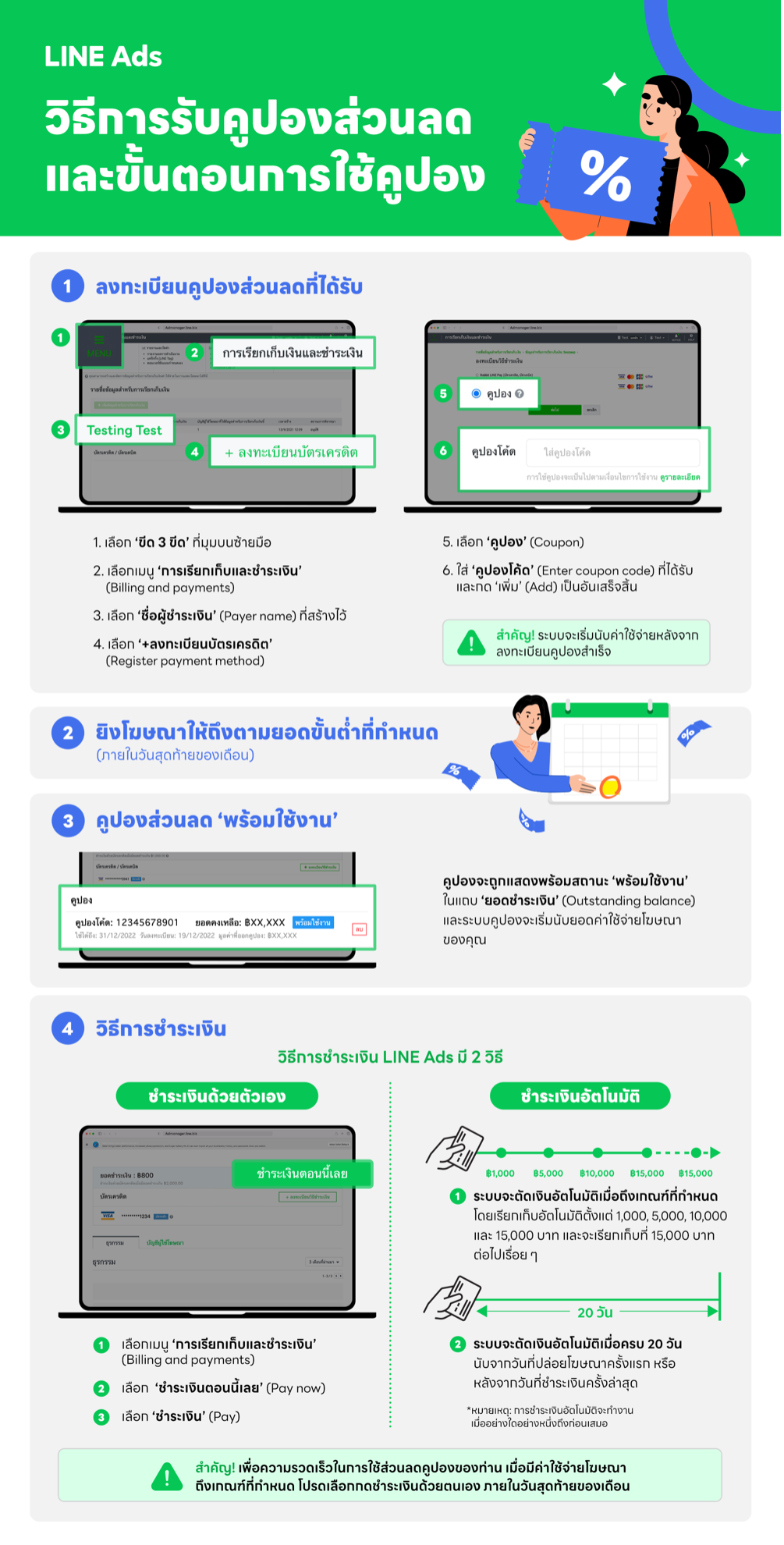 และการใช้เครดิต ต้องเป็นไปตามข้อกำหนด (LINE Ads Coupon Terms of Use)