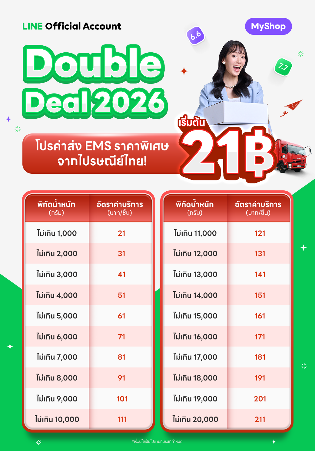 ปณท ร่วมกิจกรรมส่งเสริมการตลาด ด้วยอัตราค่าบริการจัดส่งพิเศษ (ไม่มีภาษีมูลค่าเพิ่ม) :