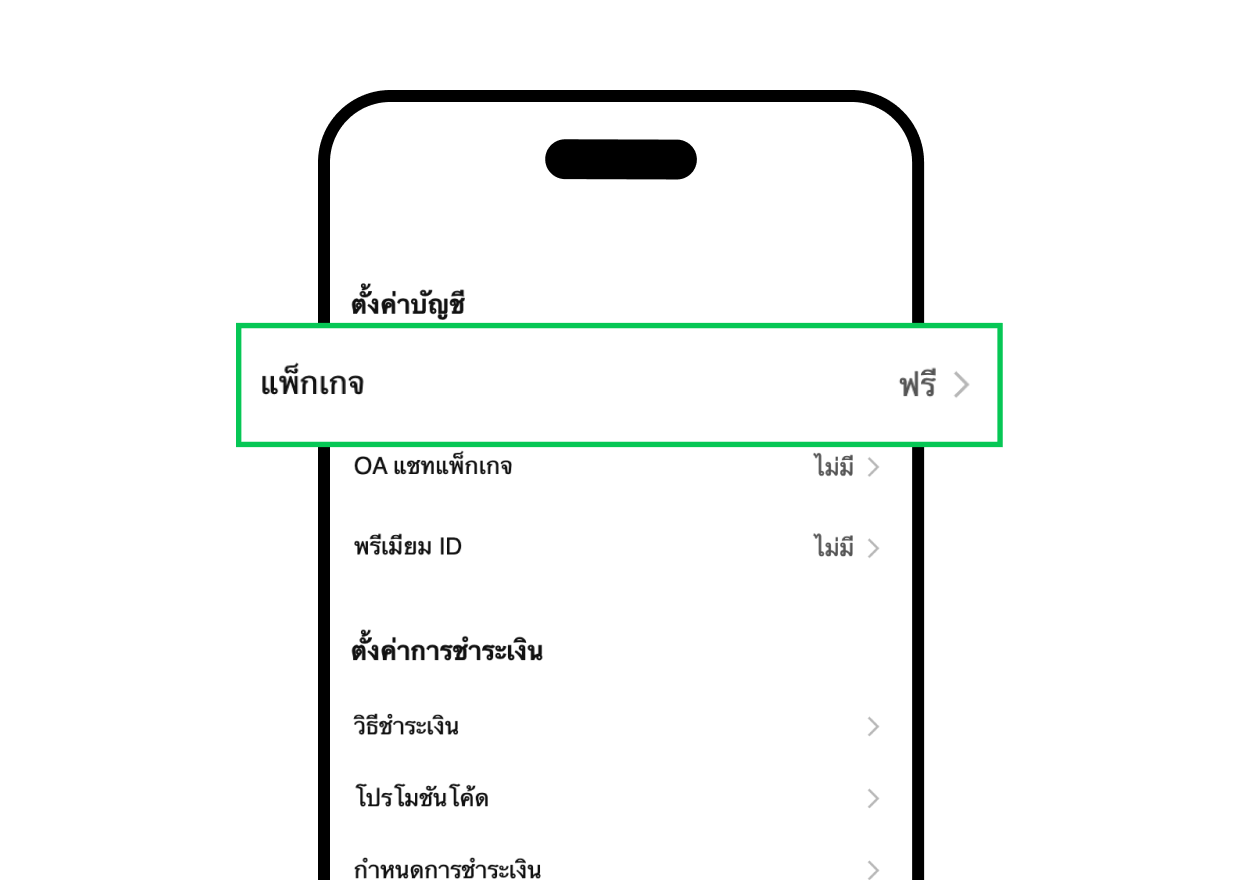 ไปที่ตั้งค่าบัญชี กดเลือก “แพ็กเกจ”